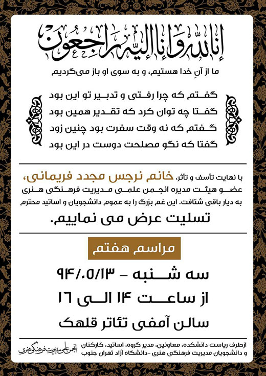 سپس خانم سرشکی از فعالین نشریه ی انجمن علمی مدیریت فرهنگی هنری گفتند: